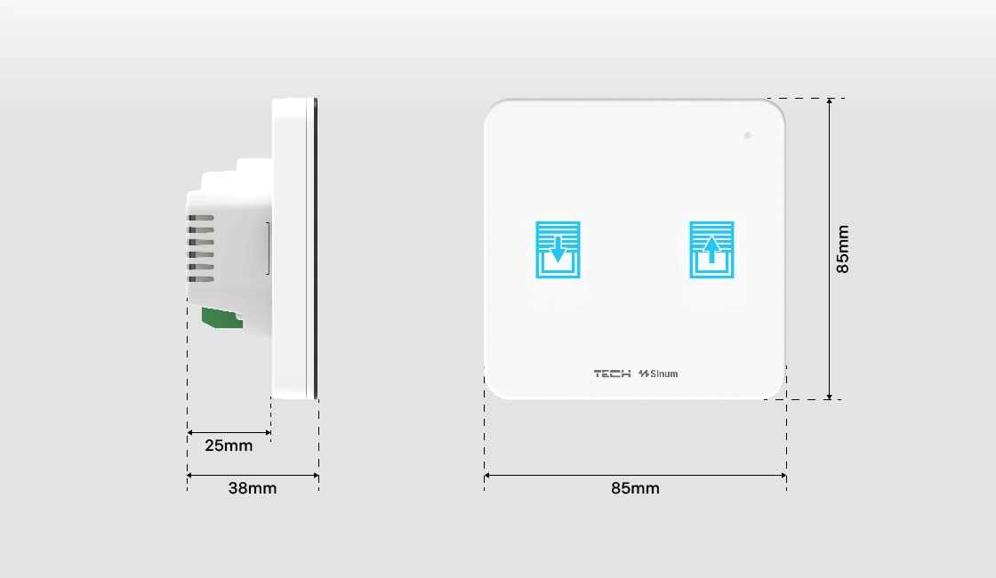Înlocuiește întrerupătoarele de perete tradiționale cu cele din sticlă și elegante din seria SINGLE pentru a controla atât iluminatul, cât și orice dispozitiv conectat la sistemul de casă inteligentă SINUM. Întrerupător tactil cu 2 benzi, echipat cu 2 relee și 2 câmpuri de senzori, îți permite să acționezi oblonul rulant în sus și în jos conectat la întrerupător direct de la locul de instalare.