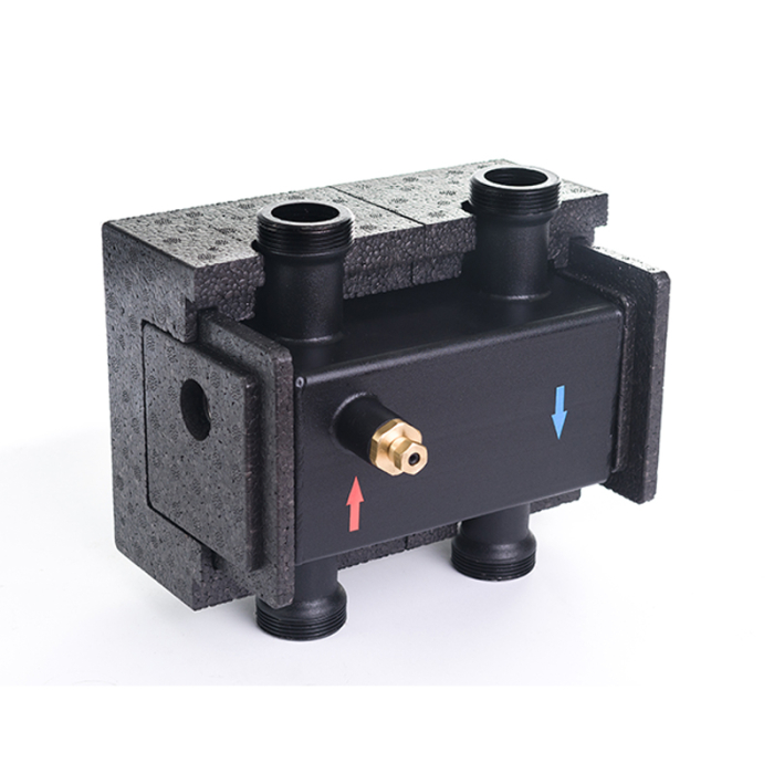 Separator hidraulic Lutherm CPN MINI – DN 25 cu izolație. Separatoarele sunt fabricate din oțel. Instalația este echipată cu izolație și conector pentru senzorul de temperatură.