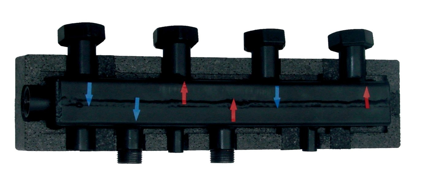 Distribuitorul din oțel cu două camere C 60 – 2, 3 sau 4 circuite DN 25 a fost dezvoltat pentru a facilita instalarea grupurilor de pompare. Din fabrică, distribuitorul este echipat cu izolație EPP. În plus, acesta are o ieșire DN 20 pe partea de retur pentru conectarea unui vas cu membrană și o ieșire DN 25 pe partea de alimentare pentru conectarea unui grup de siguranță UNI X MINI 3 bar. La cerere, unitatea poate fi dotată cu un set de suporturi de montare pe perete DELTA.