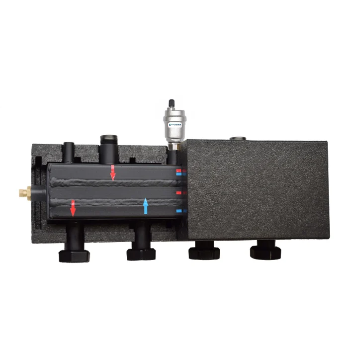 Distribuitor grupuri de pompare cu separator hidraulic încorporat și izolat, DN 25 – 4 circuite.