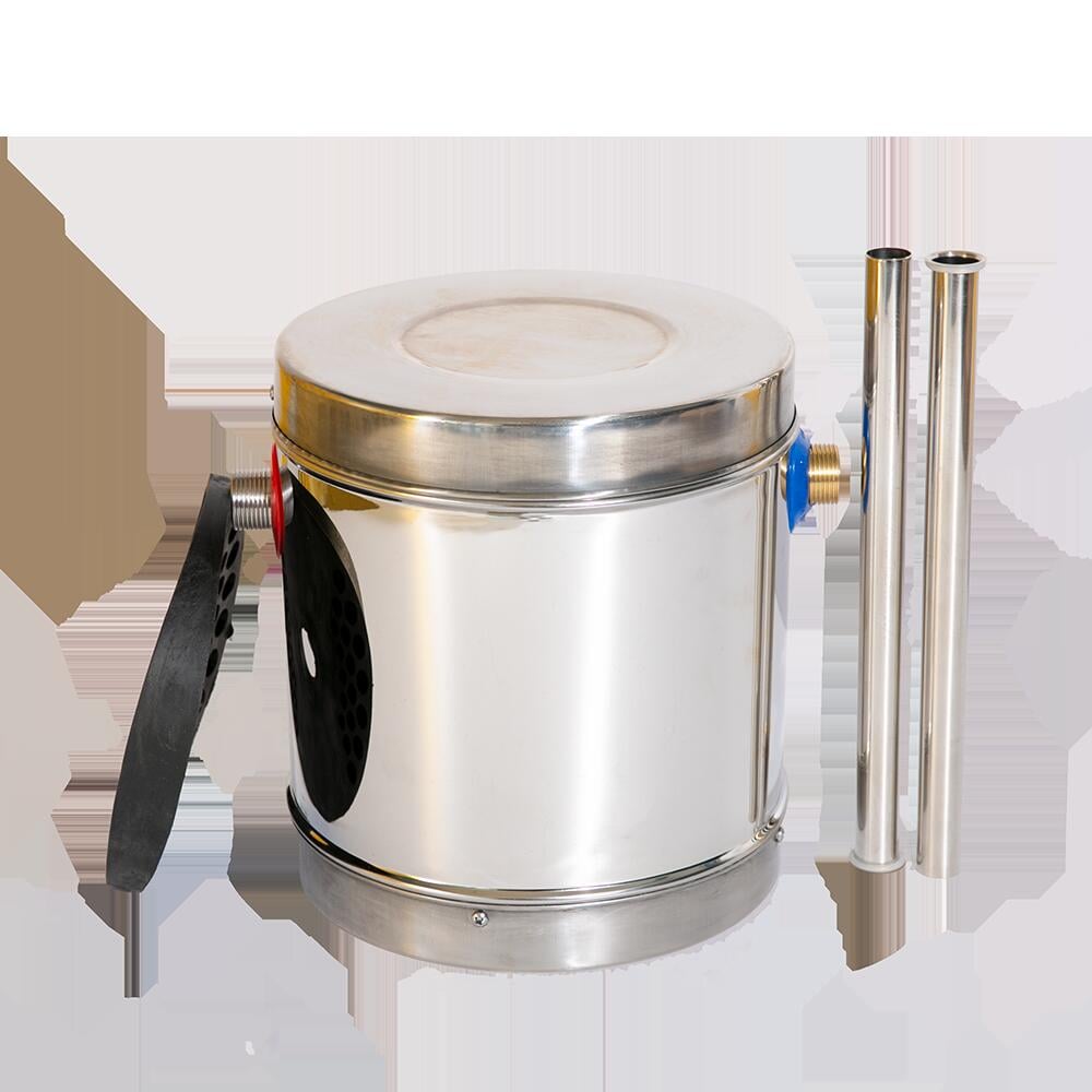 - Cu ajutorul Vasului flotor pentru instalatii solare nepresurizate se realizeaza umplerea automata a Rezervorului de acumulare. Vasul flotor are o capacitate de 5 litri si este realizat din Inox. Vasul flotor este izolat termic cu poliuretan.