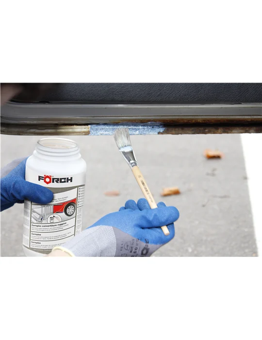 Neutralizează și stabilizează oxizii de fier, transformă rugina într-o combinaţie metalo-organică stabilă.