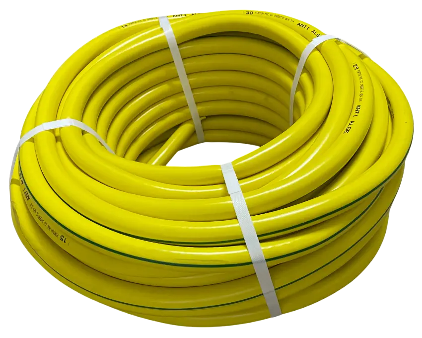 Furtunul Galben cu Inserție Anti-Alge este proiectat special pentru a preveni acumularea algelor și pentru a menține fluxul de apă curat și constant.