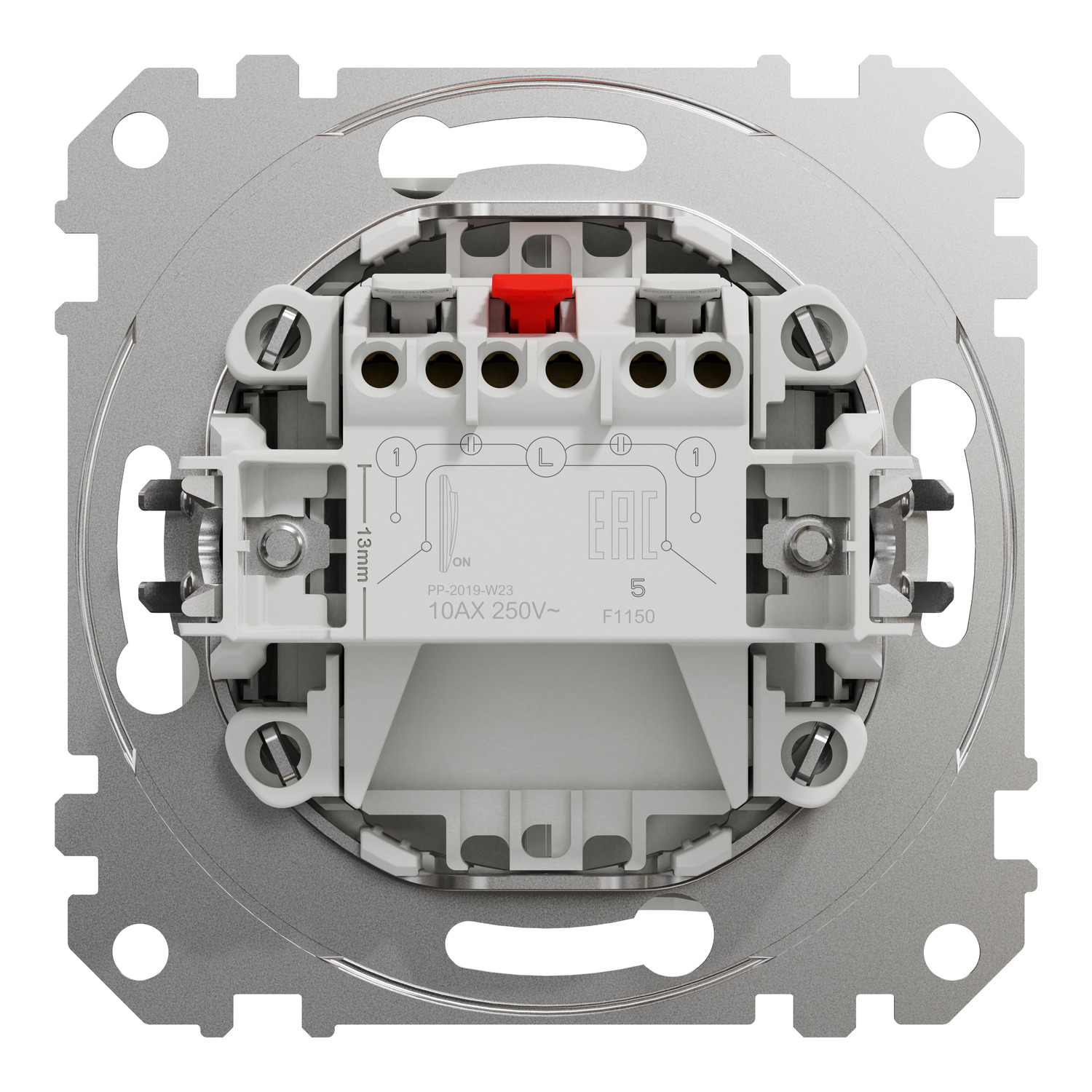 Acesta este un mecanism de comutare cu rama de fixare pentru elementele de design Sedna de la Schneider Electric. Acesta este un comutator cu 2 circuite. Pentru actionare se utilizeaza un basculant/buton. Conectarea dispozitivului se face cu borne fara suruburi. Modul de fixare al dispozitivului este realizat cu suruburi si clesti. Tensiunea sa operationala nominala UE este de 250 V c.a. la 50/60 Hz. Curentul sau nominal este 10AX. Acest dispozitiv este proiectat pentru a fi montat in interior. Dimensiunea produsului este (W) 73mm x (H) 73mm x (D) 37mm. Adancimea de proiectie este de 24 mm. Este fabricat din material termoplastic ABS-UV stabilizat. Culoarea produsului este alba cu finisaj lucios de suprafata. Acesta atinge un grad de protectie IP20. Sedna Design Elements este o noua generatie de comutatoare electrice inspirate de moda bspandnbspinterior design. Cu linii moderne care reflecta tendintele de astazi si o estetica rafinata, nbspSedna este mai mult decat un gand ulterior. Sedna Design Elements merge chiar mai departe in ceea ce priveste ergonomia, usurinta in instalare si utilizare, fiabilitatea si calitatea finisajelor. Produsul este in conformitate cu standardul IEC 60669-1. Are certificarea GOST-R a produsului.