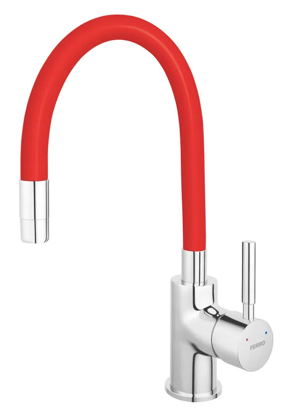 Bateria Zumba BZA4R de la Ferro este de tip monocomanda si se remarca prin imbinarea dintre finisajul cromat si cel rosu. Aceasta este prevazuta cu o pipa elastica, a carei forma se poate modela in functie de nevoi.