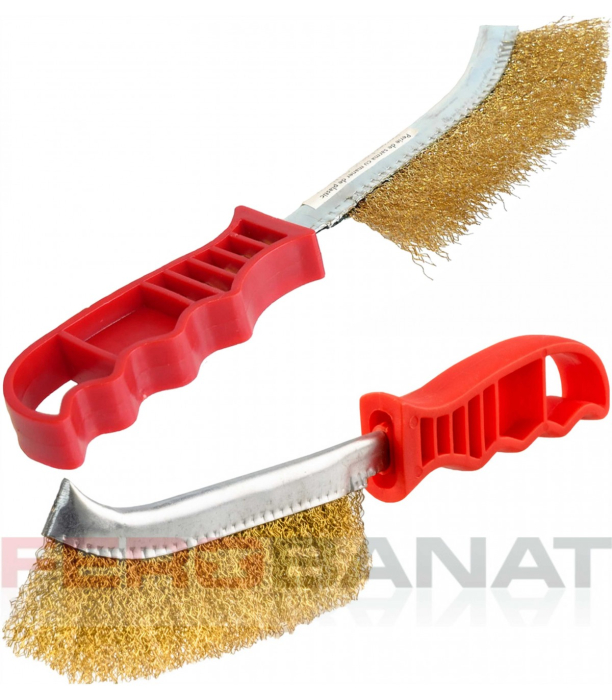 Perie manuala din sarma de alama. Este realizat din sarma de alama densa, sertizata, de inalta calitate. Perfect pentru lucrari de renovare, curatarea suprafetelor metalice, indepartarea vopselei vechi, lacului, ruginii si bavurilor din locuri greu accesibile.