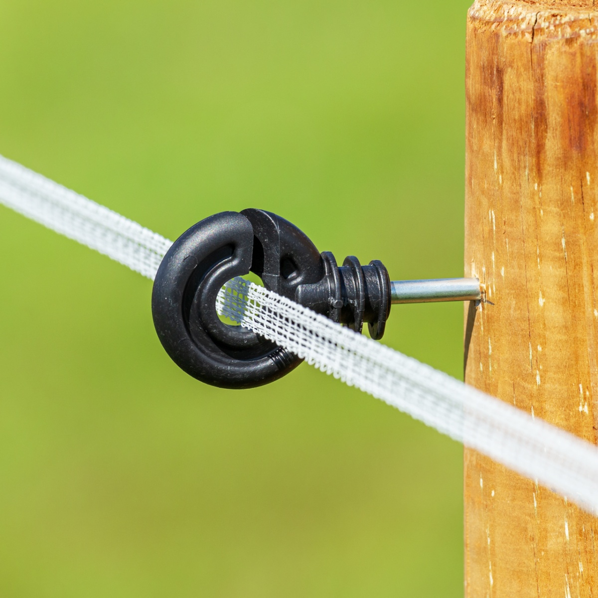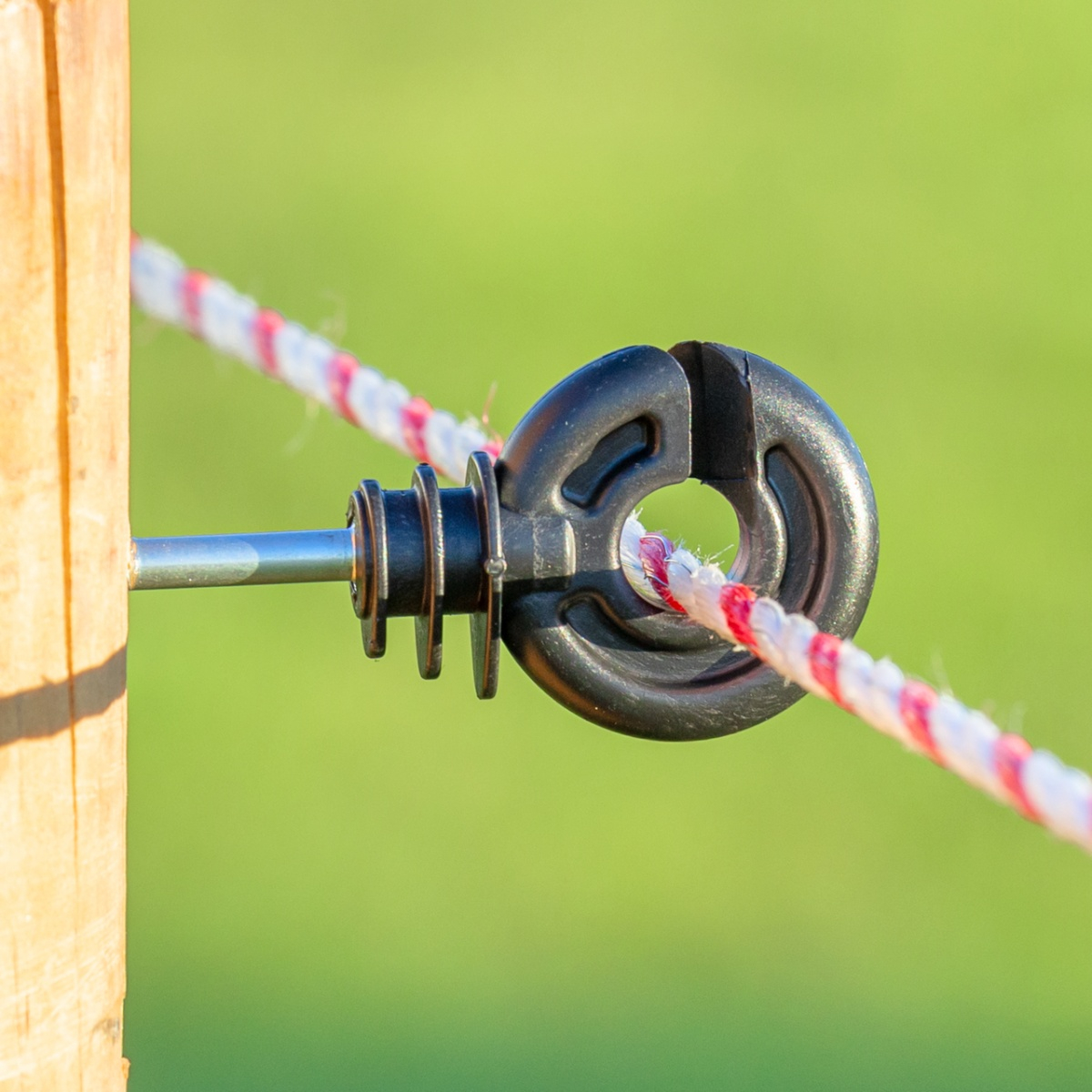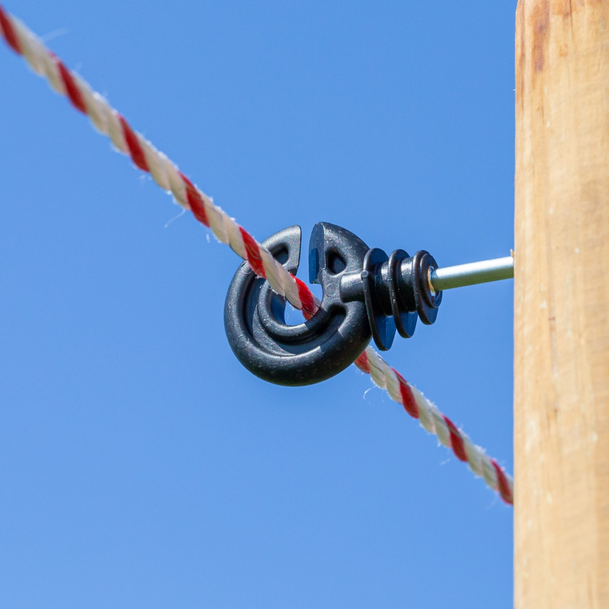 Potrivit pentru benzi înguste și fir cu diametrul max. 6 mm. Inel din plastic, izolator bun, rezistent la radiații UV, cu holșurub galvanizat. Datorită formei speciale apa cade de pe el cu ușurință, astfel previne pierderea electrică a sistemului în timp de ploaie.