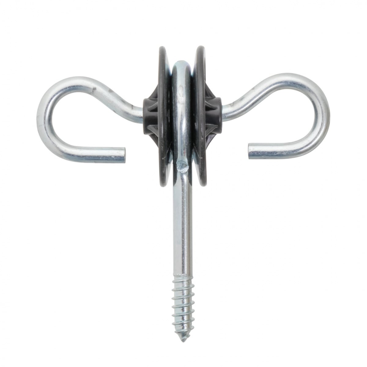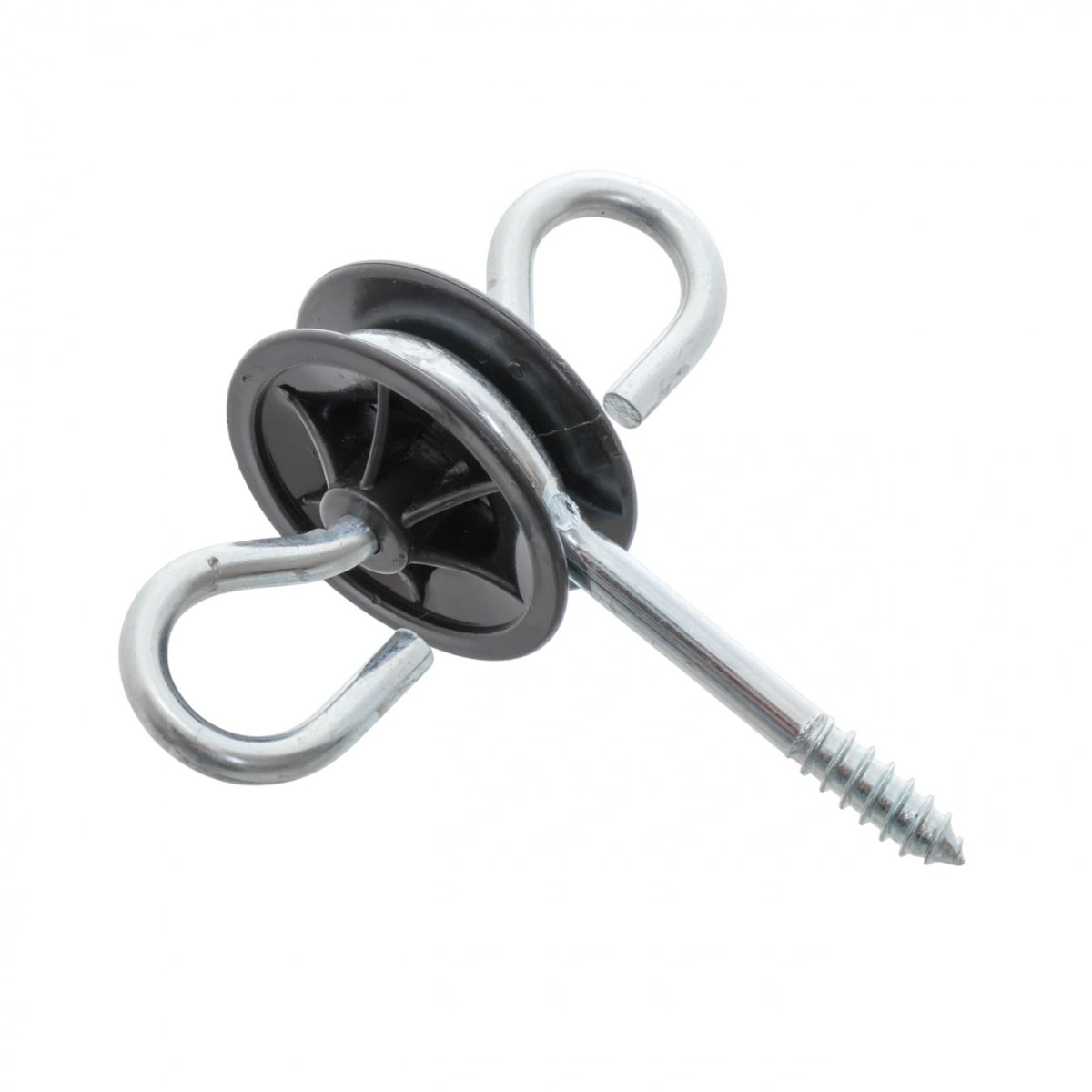 O piesă indispensabilă pentru construcția portelor pentru gard electric. Oțel galvanizat, cu holțșurub și plastic rezistent la radiații UV. Este recomandată execuția unei găuri pregătitoare înainte de înfiletarea izolatorului, mai ales în cazul lemnelor mai dure.